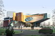 The consciously horizontal shaping of the museum in Guangzhou, an expanding metropolis on the riverbank of Pearl River, contrasts with the vertical high-rises in the background. The building functions as an autonomous, free-standing sculpture.